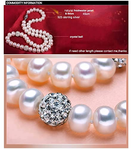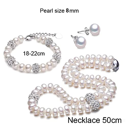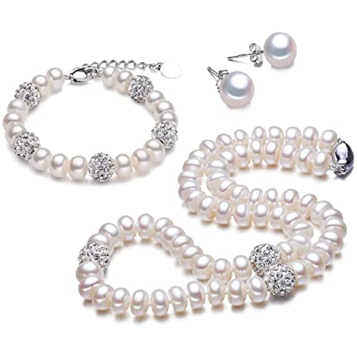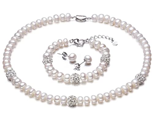 Jiyui - قلادة وسوار واقراط دائرية ناعمة ونقية معقودة يدويا من لؤلؤ صدف البحر للنساء والبنات لحفلات الزفاف ابيض - مجموعة 3 قطع