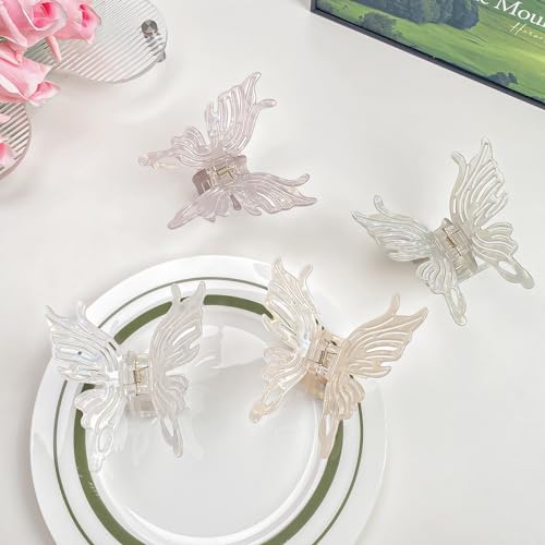 JIZIYUER - 3 قطع من مشابك شعر على شكل فراشة كبيرة 9 سم من جيزيوير، مشابك شعر غير قابلة للانزلاق، مشابك شعر مخلبية لتثبيت الشعر الكثيف والرفيع، اكسسوارات شعر لطيفة للنساء والفتيات
