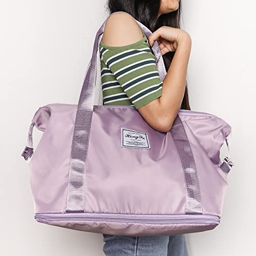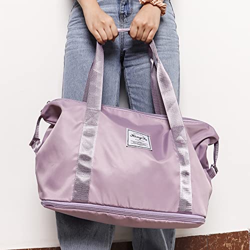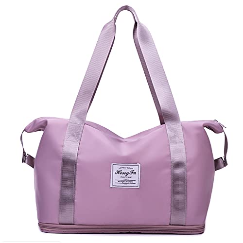 JJDreams - شنطة يد كبيرة توت رياضية للنساء والرجال من جيه دريمز قابلة للتوسيع لقضاء عطلة نهاية الاسبوع والسفر اثناء الليل مع جيب رطب وجاف أرجواني نايلون