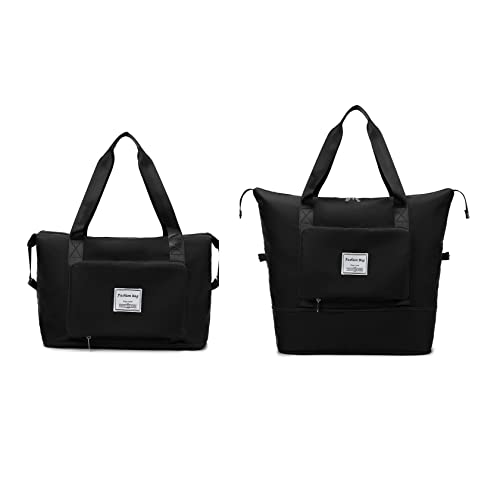 JJDreams - شنطة يد/ كتف كبيرة توت قابلة للطي والتوسيع للنساء من جيه جيه دريمز - مقاومة للماء - مع جيب مضاد للبلل للسفر ولصالة الالعاب الرياضية, أسود