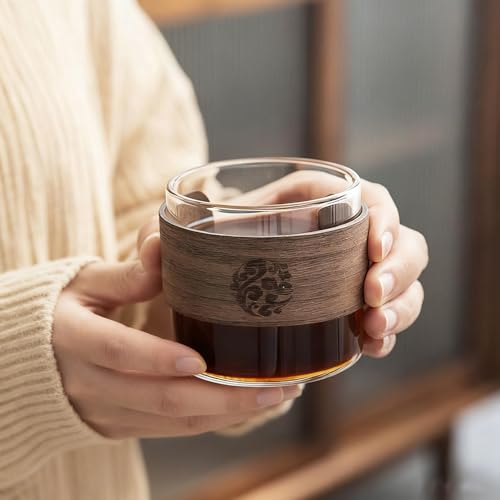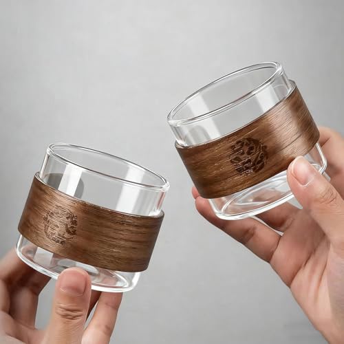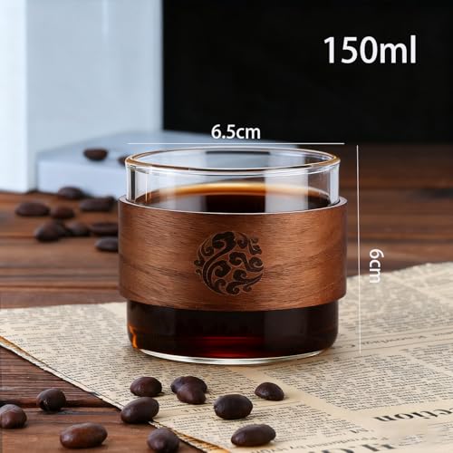jjojcll - طقم أكواب زجاجية مع غطاء خشبي من جوجكل، مصنوع من زجاج البوروسيليكات والخشب، سعة 150 مليلتر، شفاف، مقاوم للحرارة، عدد القطع: 2