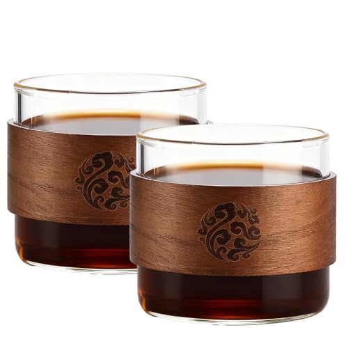 - حلقة خشبية مقاومة للحرارة - تتميز هذه المجموعة المكونة من كوبين إسبريسو بحلقة خشبية أنيقة لا ترفع التصميم فحسب، بل توفر أيضًا حماية فعالة ضد الحرارة. سواء كنت تصب الإسبريسو من ماكينة تحضير القهوة الفرنسية أو رغوة الحليب الساخن، فإن الغلاف الخشبي يضمن قبضة مريحة وخالية من الحروق.