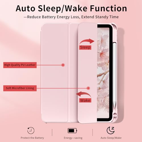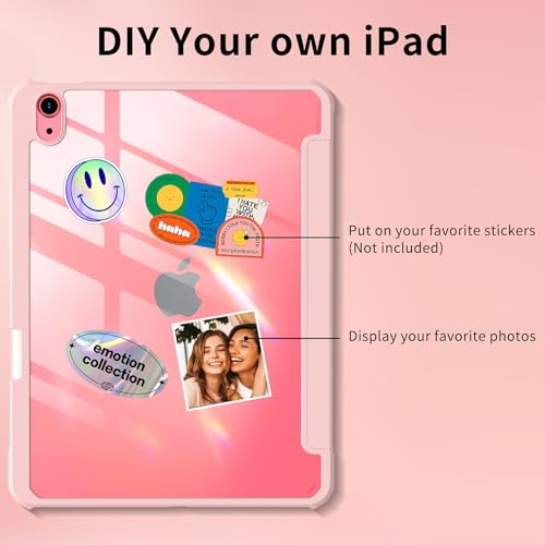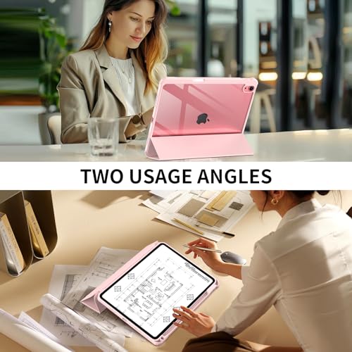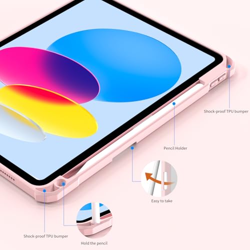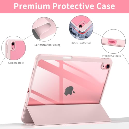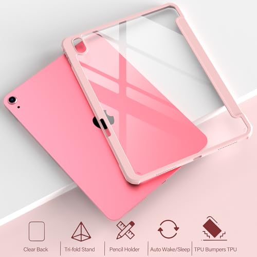 JKSML - جراب حماية خلفي صلب شفاف من جيه كيه اس ام ال من البولي كربونات بحامل قلم لجهاز اي باد 10.9 بوصة الجيل العاشر 2022، بخاصية التعرف باللمس، جراب رفيع ثلاثي الطيات، خاصية النوم/التشغيل التلقائي، وردي