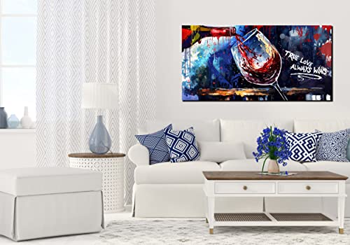 - 【مقاس لوحة فنية جدارية من القماش】 المقاس 40 انش × 20 انش، لوحة فنية جدارية جرافيتي بلون احمر نبيذي لديكور المطبخ وغرفة المعيشة
