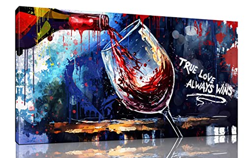 - 【مادة عالية الجودة】 مطبوعات عالية الجودة عالية الدقة على قماش ممتاز، قماش مقاوم للماء، مقاوم للأشعة فوق البنفسجية، مقاوم للبهتان في الأماكن المغلقة. لوحة فنية جدارية بتصميم جرافيتي بلون نبيذي احمر لديكور المطبخ وغرفة المعيشة