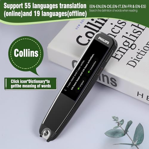 - قلم القراءة الأكثر تقدمًا مع شاشة LCD تعمل باللمس. يمكنك استخدامه بشكل مستقل في أي مكان (المكتبة أو الفصل الدراسي أو المكتب أو أثناء التنقل) ويمكنك الحصول على ترجمة نصية وصوتية أصلية. خفيفة للغاية وصغيرة الحجم، وسهلة الحمل للغاية (وظيفة البلوتوث يمكنها توصيل سماعات البلوتوث فقط)