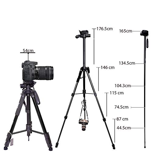 Jmary - حامل ثلاثي القوائم من الألومنيوم لجميع كاميرات دي اس ال ار KP-2264 من جماري، أسود