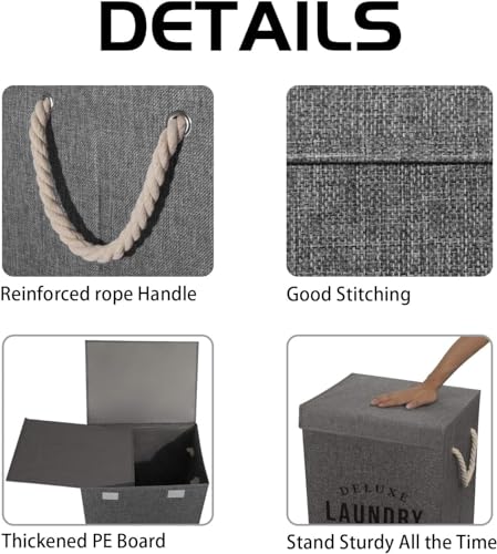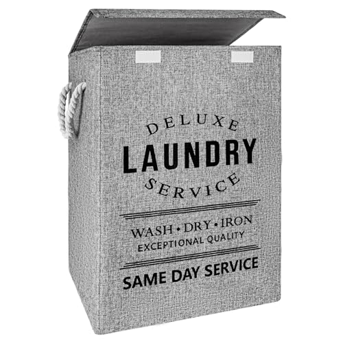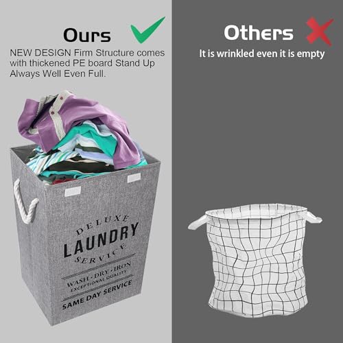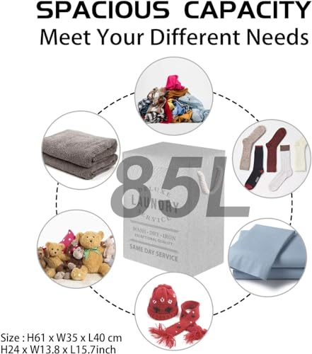 JMBNH - سلة غسيل مقاومة للماء مع مقابض مبطنة من جيه ام بي ان اتش، سلة ملابس قائمة بشكل جيد وقابلة للطي وسهلة التخزين - رمادي 90 لتر