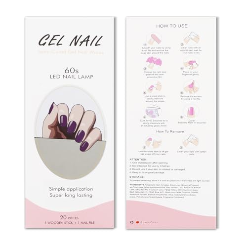 - ملصقات أظافر جل شبه معالجة: مصنوعة من طلاء جل حقيقي ومعالج بنسبة 60%. يدوم لمدة تصل إلى أسبوعين عند معالجته بالكامل تحت مصباح الأشعة فوق البنفسجية/LED. مريحة في الارتداء ومتينة وغير سامة وغير ضارة وآمنة