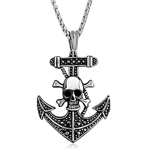 JMQJewelry - جيه ام كيو جويليري عقد بقلادة رائعة من الستانلس ستيل على شكل جمجمة وصليب ومرساة للرجال والنساء والفتيات مجوهرات تذكارية ستانلس