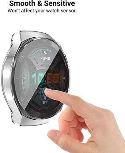 Generic - جراب حماية من بولي يوريثين مقاوم للحرارة ناعم مطلي بالكهرباء من جيه ان اس دبليو، اكسسوارات الساعات الذكية، جراب ساعة هواوي GT 2E (شفاف)