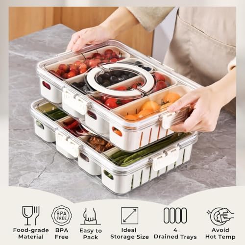 - صينية وجبات خفيفة متعددة الاستخدامات: حجم صندوق الوجبات الخفيفة 31 × 24 × 7 سم. صواني الوجبات الخفيفة ذات الأغطية عملية للغاية ويمكنك اصطحابها معك في الرحلات أو النزهات لحمل بعض الفواكه والحلوى والبسكويت. يمكنك أيضًا استخدامه لتنظيم وتخزين الوجبات الخفيفة في مخزن الطعام الخاص بك كصندوق غداء للمدرسة أو العمل.