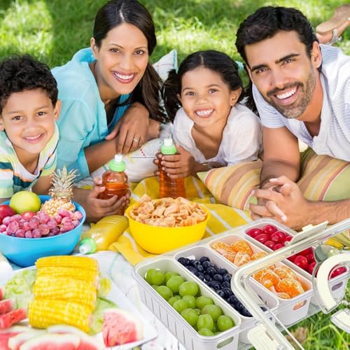 JNYLYFC - صينية تقديم مقسمة بغطاء ومقبض، صندوق وجبات خفيفة بأ 4 أقسام، علبة تخزين طعام للسفر والحفلات والنزهات، منظم شفاف للخضروات والحلوى والفواكه والمكسرات من JNYLYFC