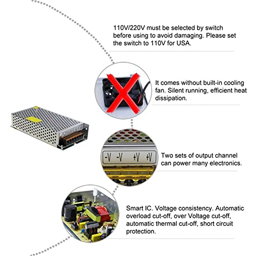 - مثالي لشرائط LED والطابعات ثلاثية الأبعاد وأجهزة إرسال واستقبال راديو هام وكاميرات سي سي تي في ومضخم صوت السيارة ومضخمات الصوت وأجهزة الراوتر اللاسلكية وقطط ايه دي اس ال والموزع وإمدادات طاقة الصوت/الفيديو. للاستخدام الداخلي فقط!
