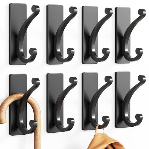 jockcaras - 8 قطع من خطافات المعاطف اللاصقة للباب جوكاراس: خطاف حائط مصمم 10 باوند لتعليق المناشف والحمام شديد التحمل الستانلس ستيل اسود الألومنيوم 10.0 رطل 10.0