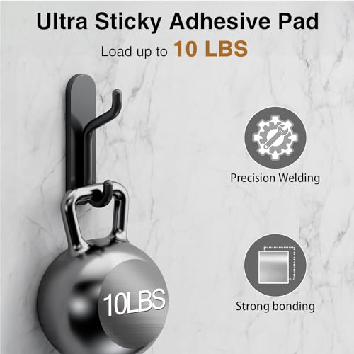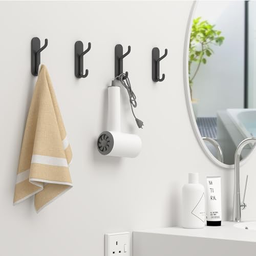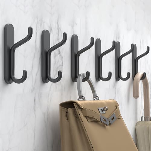 jockcaras - خطاف حائط لاصق لتعليق منشفة الحمام: شديد التحمل للتعليق على الجاكيت والمعطف الحائط للاستحمام 6 قطع اسود الألومنيوم منجوككاراس