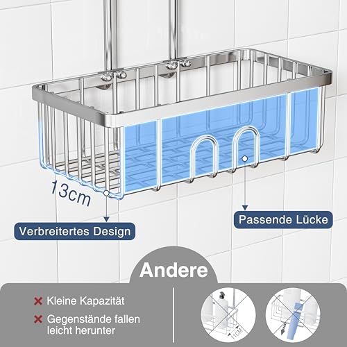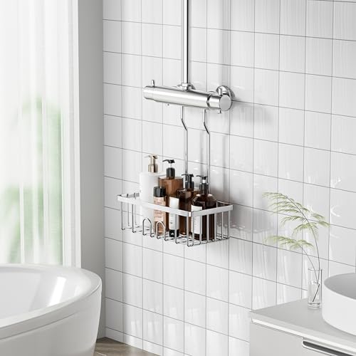 jockcaras - رف دش لتعليق سلة الدش بدون ثقب حمام حامل شامبو للاستحمام SS304 من الستانلس ستيل 30 × 13 8.5 سم