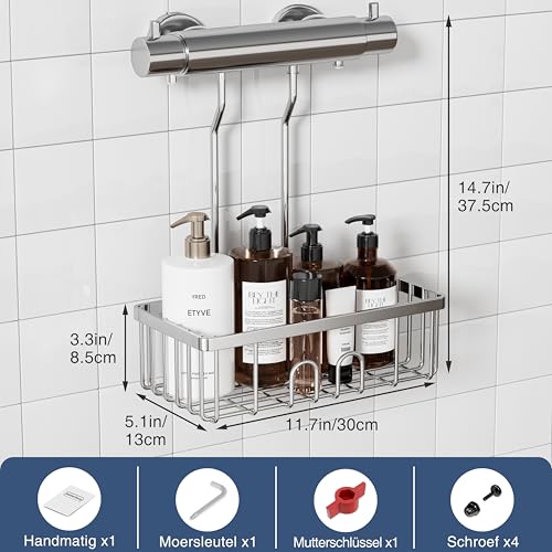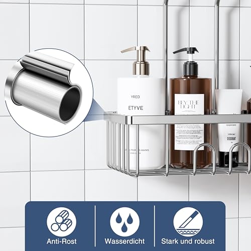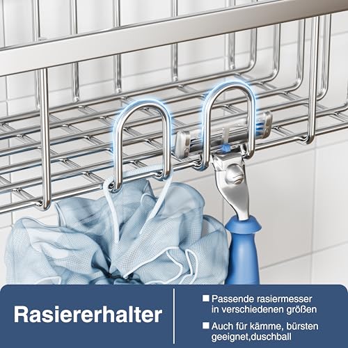 - ✔ ستانلس ستيل مقاوم للصدأ: مصنوع من الستانلس ستيل SUS 304 القوي والمقاوم للصدأ، رف الدش هذا متين ومقاوم للماء والخدوش.