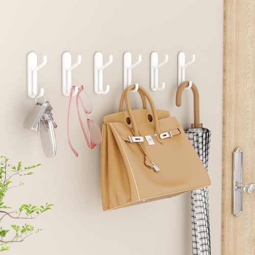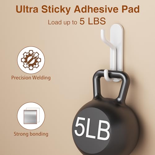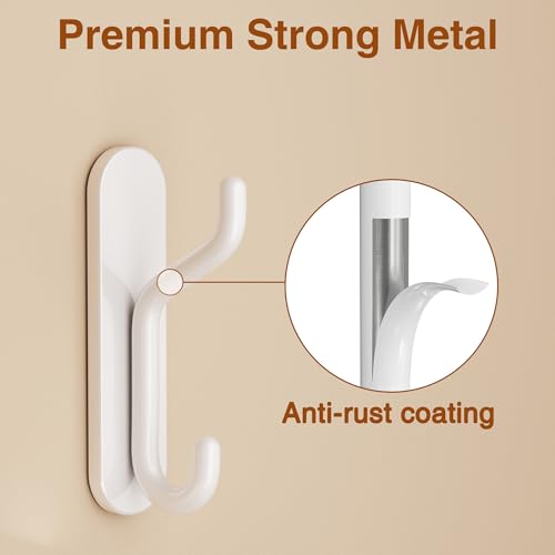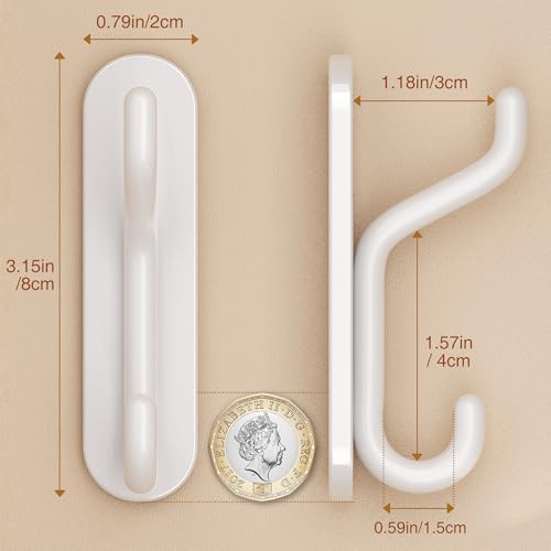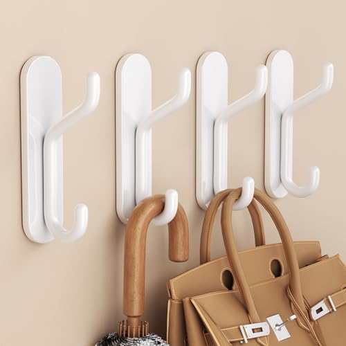 jockcaras - خطافات حائط لتعليق المناشف من جوكاراس: شماعة معطف لاصقة شديدة التحمل - خطاف دش الحمام اللاصق للروب والملابس مصنوع المعدن الابيض 4 قطع الألومنيوم