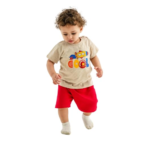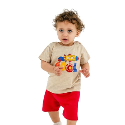Jockey M M - طقم ملابس للأولاد من 2 قطعة تيشرت نص كم وشورت مطبوع عليه صورة مركبة فضائية للأطفال البيبي والأطفال الصغار من جوكي ام ام (عبوة من 1 قطعة)