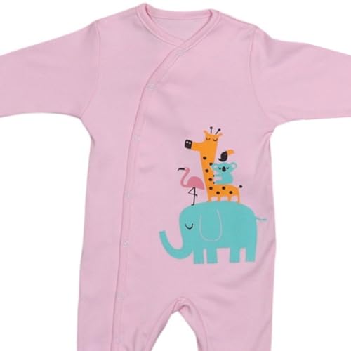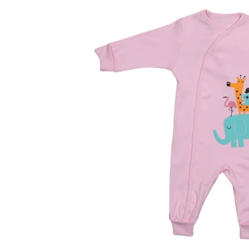 Jockey M M - سالوبيت بكباسين قطن باكمام طويلة مطبوع عليه حيوانات للبنات من جوكي ام ام - بينك، 0-3 شهور