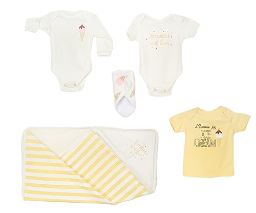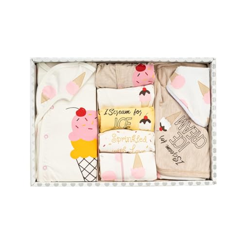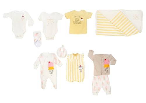 Jockey M M - طقم قطن بطباعة أيس كريم للبنات من جوكي ام ام، متعدد الألوان، مناسب لعمر يوم- 3 شهور- طقم من 10 قطع