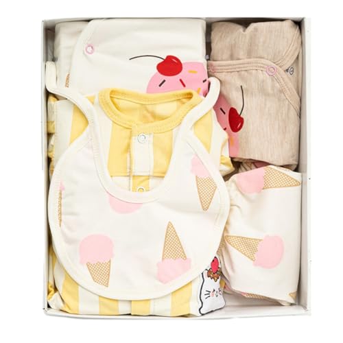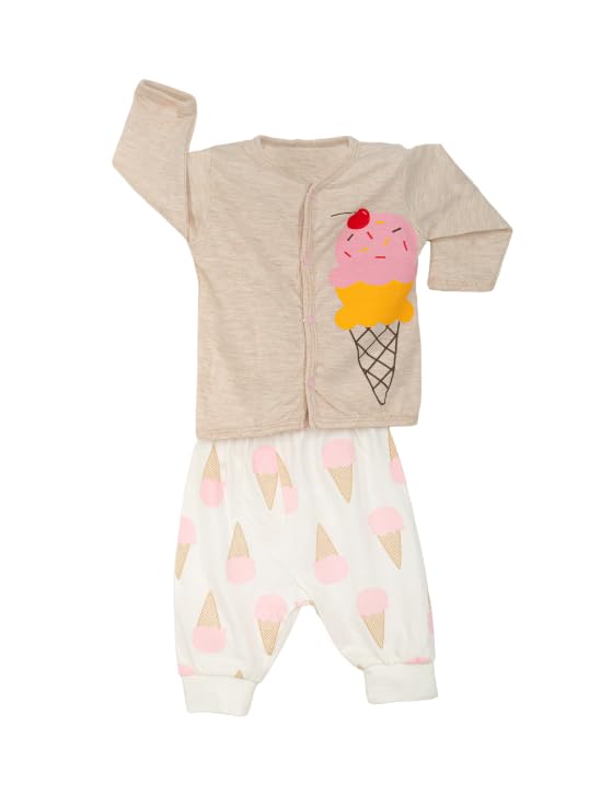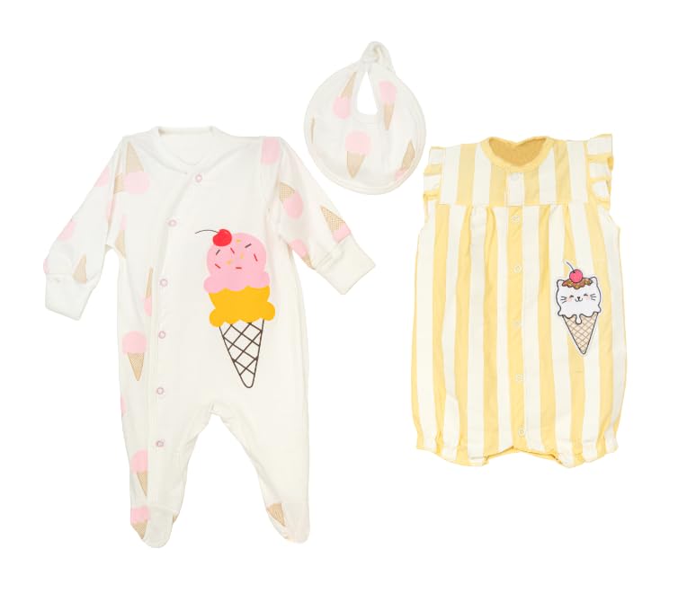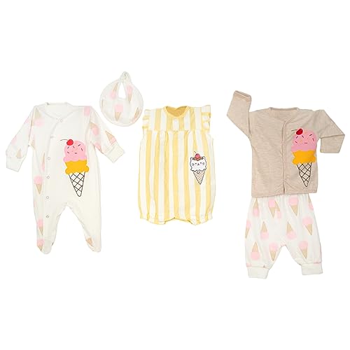 Jockey M M - طقم قطن بطباعة أيس كريم للبنات من جوكي ام ام، متعدد الألوان، مناسب لعمر يوم- 3 شهور- طقم من 5 قطع