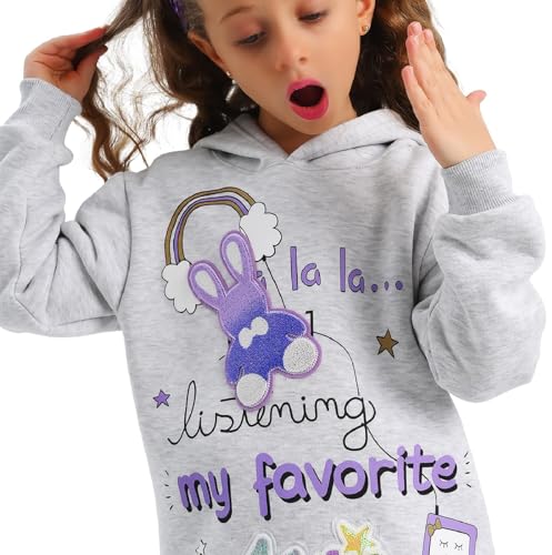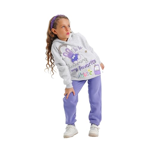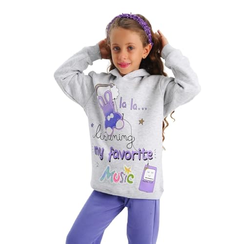 Jockey M M - طقم بيجامة للبنات من جوكي ام ام مكون من سويت شيرت بغطاء للرأس واكمام طويلة وبنطلون مطرز بنمط موسيقي من قطعتين