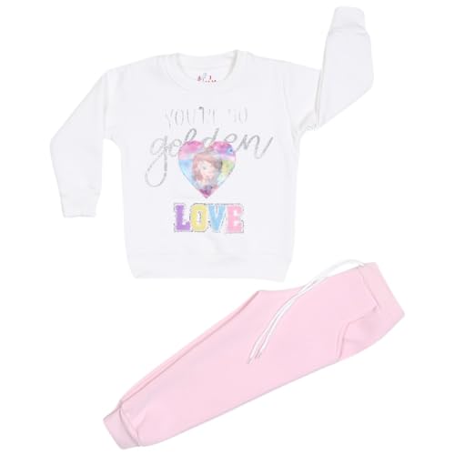 Jockey M M - طقم بيجامة للبنات مكون من سويت شيرت باكمام طويلة ومطرز بكلمة Love وبنطلون للبنات من جوكي ام ام، قطعتين