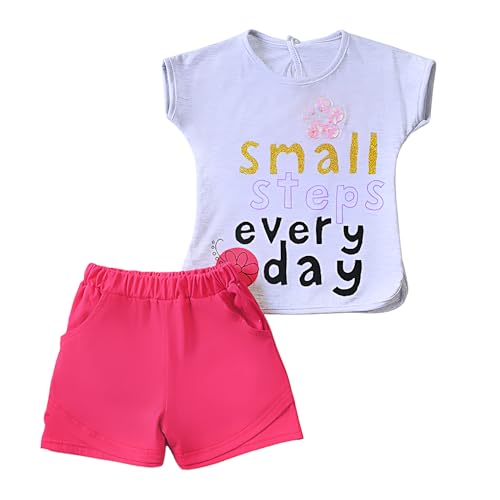 Jockey M M - طقم بيجامة للبنات من جوكي ام ام مكون من قطعتين مطبوع عليه عبارة Small Steps Every Day