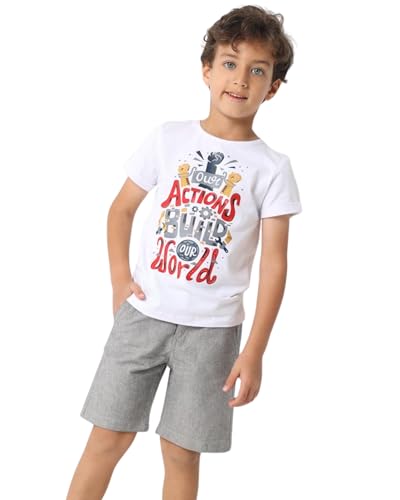 JodiMini - تيشرت بطباعة عبارة Action للأولاد من جودي ميني، أبيض
