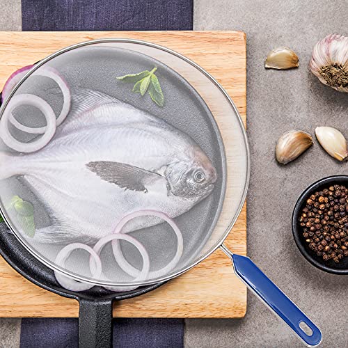 - 【آمن للطهي】واقي شبكي بمقبض من السيليكون، يمكنها تقليل أو إزالة بقع الزيت من طاسة القلي، ويمكن للمقبض البلاستيكي ضمان طهي آمن، مع حماية اليدين من الحروق.