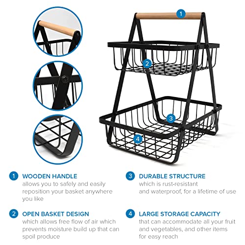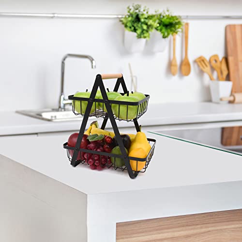 - موفر للمساحة: يساعد وعاء الفاكهة المكون من طبقتين على ترتيب الخزائن والطاولات دون أن يشغل مساحة كبيرة. تحتوي سلة الخضروات للمطبخ هذه على سلتين معدنيتين تسمح لك بتخزين وفصل الخضروات والتوابل والفواكه..