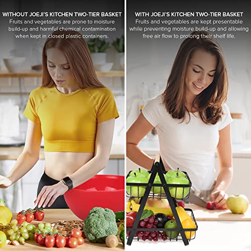 joeji's Kitchen - سلة فاكهة سوداء بطبقتين كطبق فاكهة وحامل كيك معدني بلون أسود للخضروات والفاكهة والكيك من جو جيز كيتشن