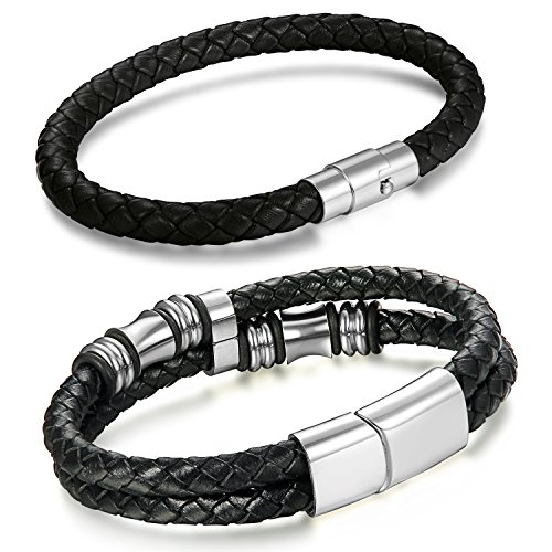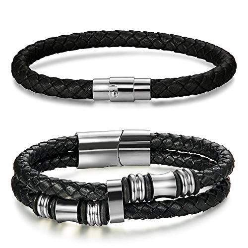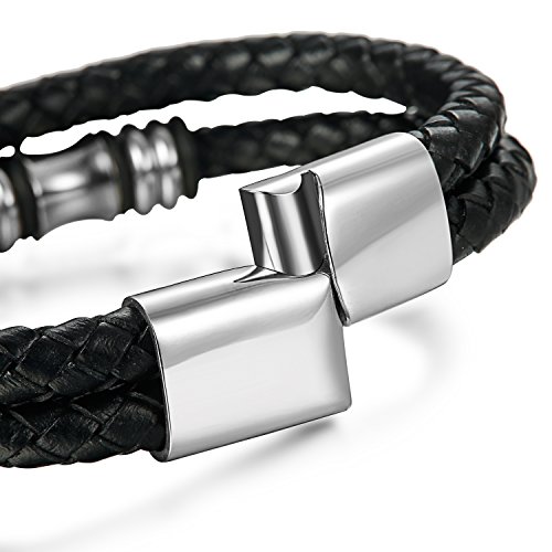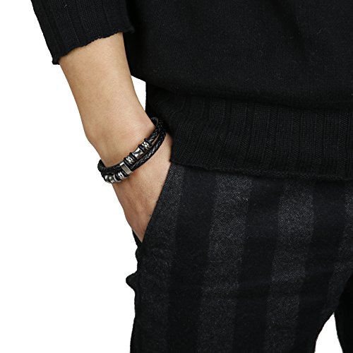 JOERICA - سوار من الجلد بمشبك مغناطيسي ستانلس ستيل جويريكا للرجال مقاس 7.5-8.5 بوصة جلد