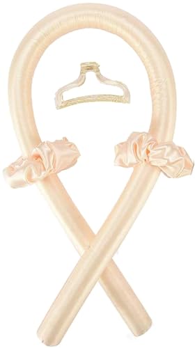 JOIMAR - مجموعة تمويج الشعر بدون حرارة للشعر الطويل والمتوسط، بكرات شعر طبيعية ناعمة مع مشبك مخلبي، قضيب لتمويج الشعر للنوم به طوال الليل (لون بيج)
