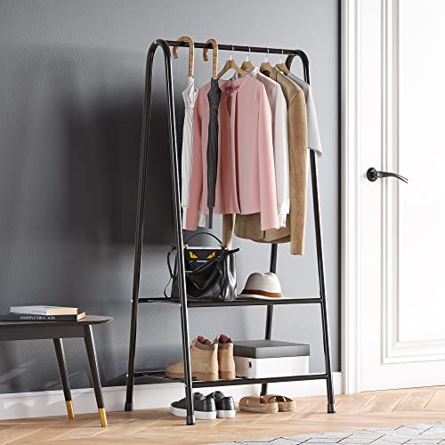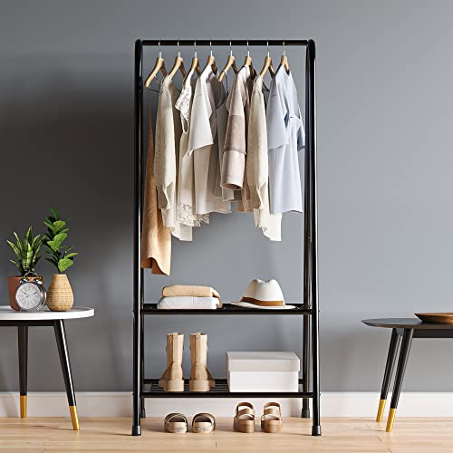 JOISCOPE - رف ملابس معدني محمول من جويسكوب عمود شديد التحمل مع مزدوج الطبقات لتخزين الملابس والأحذية مناسب لغرفة النوم والمكتب وغرفة المعيشة أسود