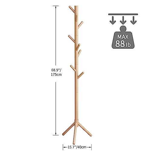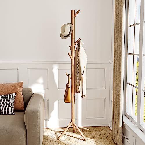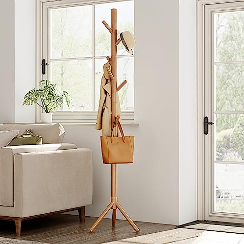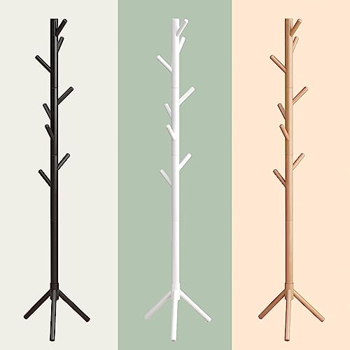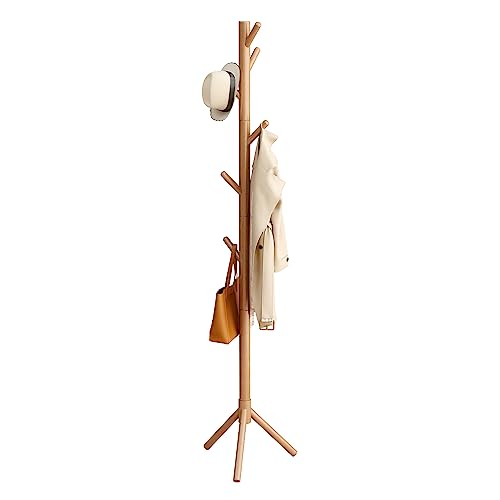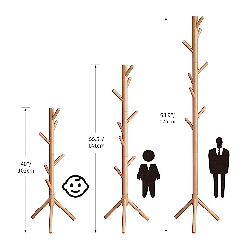 JOISCOPE - رف معاطف خشبي من جويسكوب قائم بذاته بتصميم شجرة مع 3 مقاسات قابلة للتعديل 8 خطافات للملابس والقبعات والمظلات وشنط اليد مناسب لغرفة النوم- المكتب- الرواق خشب