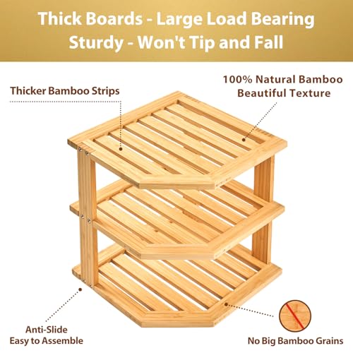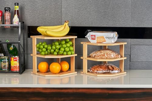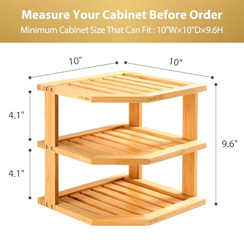 Jolfay - منظم ارفف زاوية من الخيزران مكون من 3 طبقات لسطح الطاولة وخزانة المطبخ، منظم مساحة للمطبخ والحمام من جولفاي