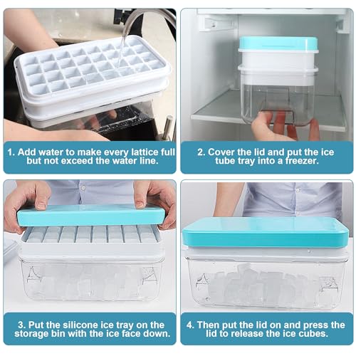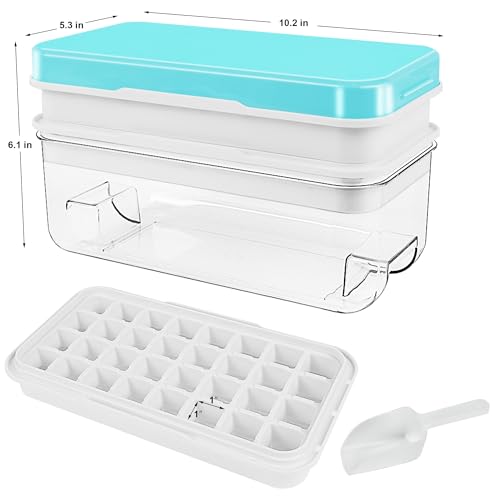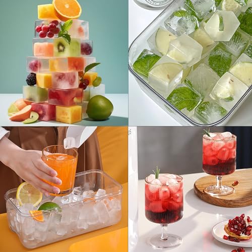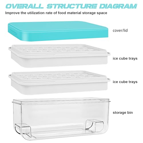 - احصل على 64 مكعب ثلج في وقت واحد: مع صينيتين تحتويان على 32 شبكة مصممة لتكون قابلة للتكديس، يمكنك الحصول على مجموعه من 64 مكعب ثلج في جلسة تجميد واحدة. يسمح لك الصندوق ذو السعة الكبيرة بتخزين عدد من مكعبات الثلج في الفريزر في وضع الاستعداد بينما تصنع 64 مكعب ثلج آخر مع الصواني المكدسة فوقه مباشرة.