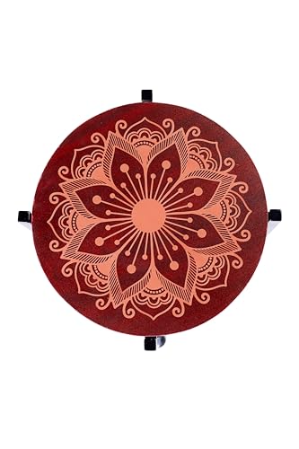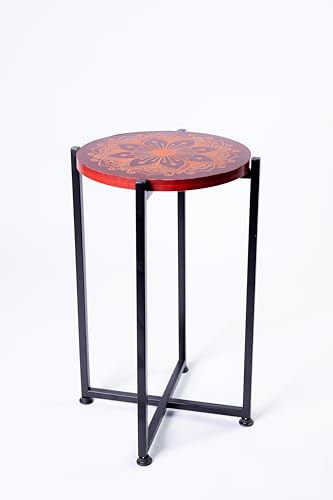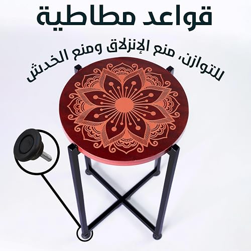 Jollydar - ترابيزة جانبية Beetles من الاستانلس ستيل طلاء الكتروستاتيك أسود مع سطح خشبي مزخرف باستخدام أشعة الليزر قواعد اتزان متغيرة الارتفاع طول 33سم عرض 33سم ارتفاع 50سم Jollydar