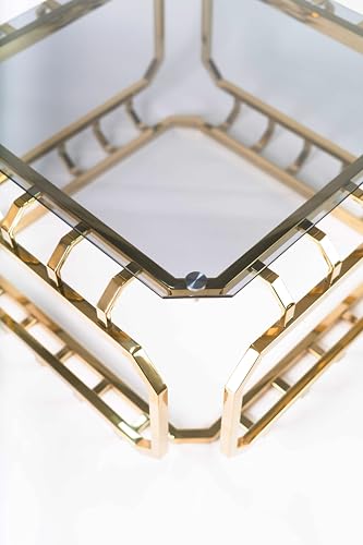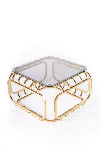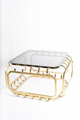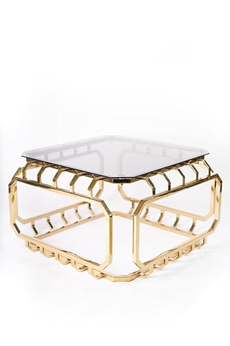 Jollydar - طاولة مركزية من الفولاذ المقاوم للصدأ (ريماس) من جوليدار بطلاء بي في دي ذهبي مع زجاج أسود مقاوم للكسر، تصميم عصري، الطول 80 سم، العرض 80 سم، الارتفاع 45 سم