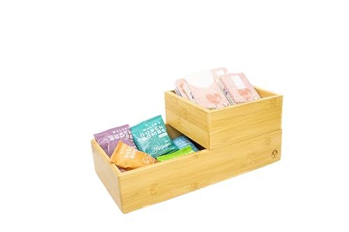 jolz - صناديق تخزين بغطاء من الخيزران جولز 15 × 7 سم صندوق قابل للتكديس مع غطاء منظم ادراج خشبي حمام بامبو