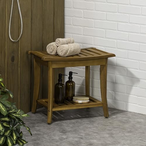 JONATHAN Y - جوناثان واي مقعد استحمام من تاكر STL1001A مقاس 22.1 انش كلاسيكي تقليدي من خشب الاكاسيا الصلب للاستخدام الداخلي والخارجي مع رف ومقبض، لون طبيعي