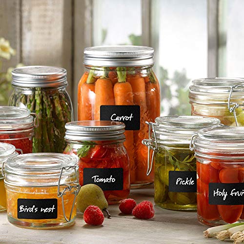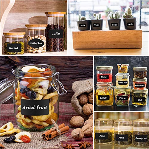 Jooheli - ملصقات سبورة سوداء مقاومة للماء وقابلة لاعادة الاستخدام من جوهيلي قابلة للمسح لتنظيم المطبخ مع ققمين الطباشير ابيض القابل لتزيين البرطمانات والمخزن والمنزل والمكتب 120 قطعة