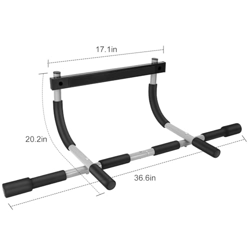 - يناسب معظم المداخل: يأتي في عبوة وحدة بأبعاد 50.8 × 8.25 × 20.32 سم، يناسب إطارات الأبواب بعرض يصل إلى 90 سم. يمكن استخدامه للتمرين داخل المنزل، يُرجى مراعاة أن المدخل يجب أن يتراوح عرضه ما بين 60.96 - 81.28 سم لاستيعاب القضيب