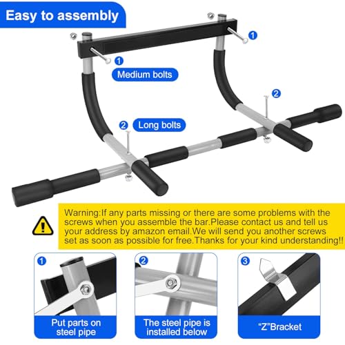 - سهل التركيب: يأتي قضيب تمارين العقلة لإطار الباب مع دعامات أمان ودليل السلامة (استخدام اللغة العربية غير مؤكد) وأدوات تجميع، مما يجعل من السهل تركيبه وإزالته في ثوانٍ. يستخدم رافعة لتثبيته على مدخل الباب حتى لا تضطر لاستخدام مسامير وحتى لا يسبب ضرر للباب