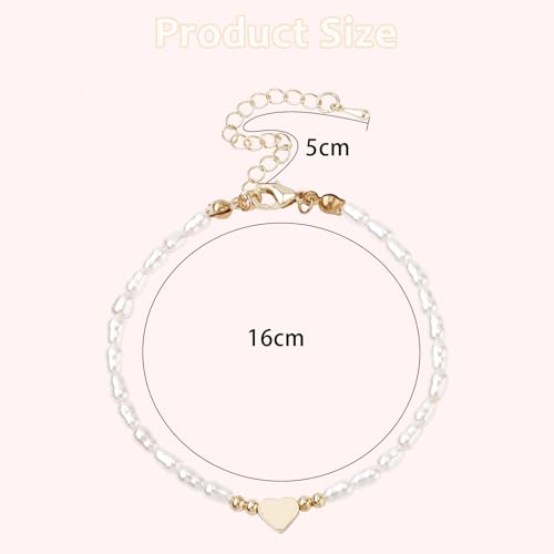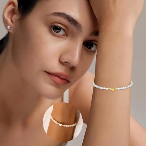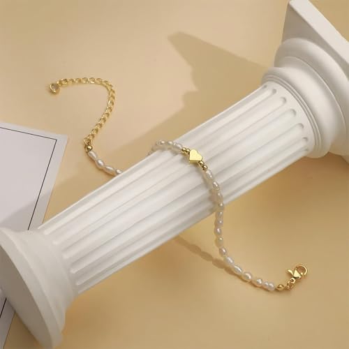 JOOTUEPO - جووتوبو سوار لؤلؤ المياه العذبة للنساء، سوار انيق على شكل قلب ذهبي لؤلؤي، سوار قابل للتعديل، هدية مجوهرات انيقة لوصيفة العروس وحفلات التخرج للبنات وحفلات الزفاف واعياد الميلاد