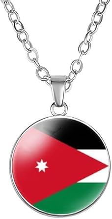 Generic - قلادة بتصميم علم الاردن، تصميم العلم الوطني ثلاثي الالوان، قلادة معدنية فضية، هدية تذكارية لمشجعي فريق كرة القدم