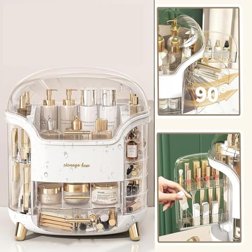- 【مقاوم للغبار ومقاوم للماء】يمكن لمنظم مستحضرات التجميل المزود بغطاء تخزين مستحضرات التجميل بأشكال وأحجام مختلفة مع الحفاظ عليها منظمة. الغطاء والأدراج شفافة لحماية مستحضرات التجميل الخاصة بك من الغبار والماء. يمكن لأدراج التخزين السفلية المكونة من طبقتين تخزين أحمر الشفاه وملمع الشفاه وفرش المكياج وأقلام الحواجب وكريم الأساس وأدوات التجميل والقلائد والخواتم وغير ذلك.